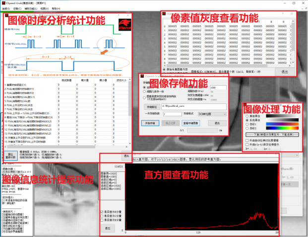 基于WINDOWS的专用上位机软件:ESpeedGrab。主体采集和显示界面如下:
