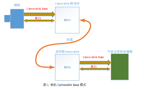 1) 上游部件:Cameralink信号转光纤信号的【部件A】;